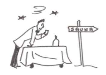 In the sauna we sat on benches, sweating in silence. I had two problems : the first, I was under the firm impression that they all looked in my direction to see how a Frenchman was really made. The second, I did not know myself where to look. The sauna was small and I could not very well stare at the ceiling. I do not remember ever sweating so much. Some sweat no doubt due to the heat and some to the inward commotion. If only somebody had said something! Anything ! No. Nothing disturbed that endless silence. Had there been flies, you would have heard them flying. But we were not in Cairo, although it felt like it!