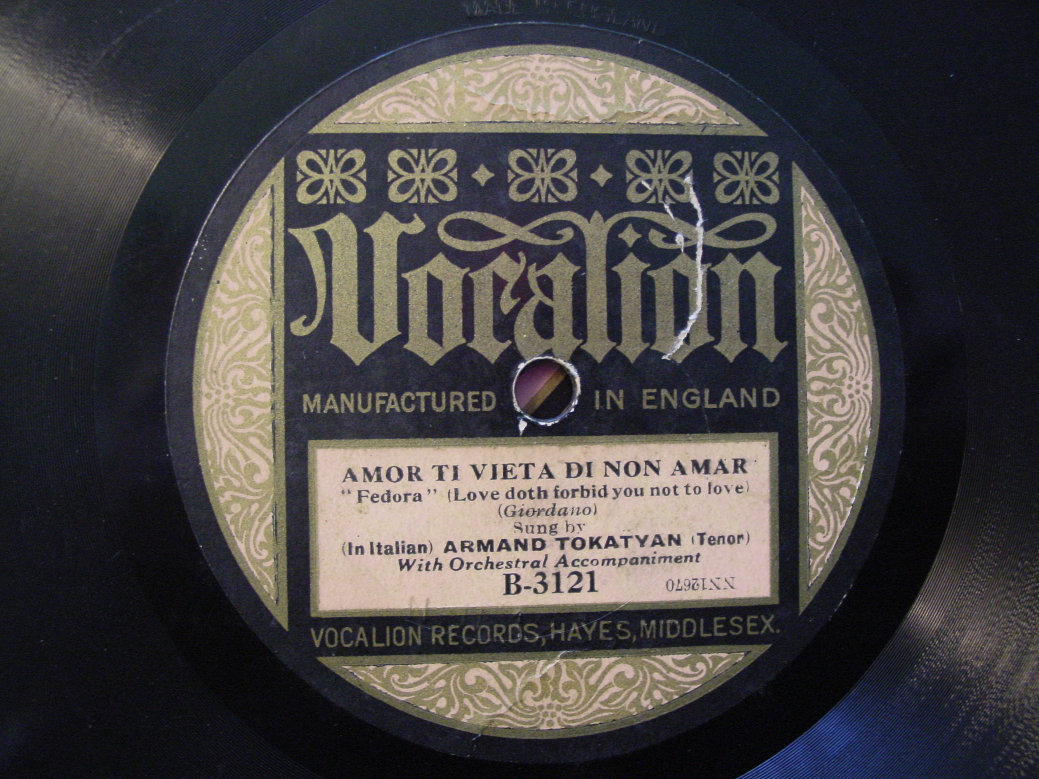 Listen to a 30-second clip of Armand Tokatyan singing the opera. This video was captured on Armand Tocatlian‘s record player.
