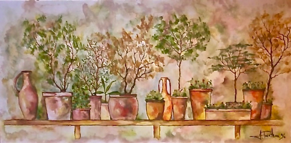 After some time, I told him I would love a painting of simple, old, clay terra cotta pots. I knew that we had very different styles in terms of decor, but I was very excited to see his rendition of my vision… I also knew, whatever he created, I would cherish.