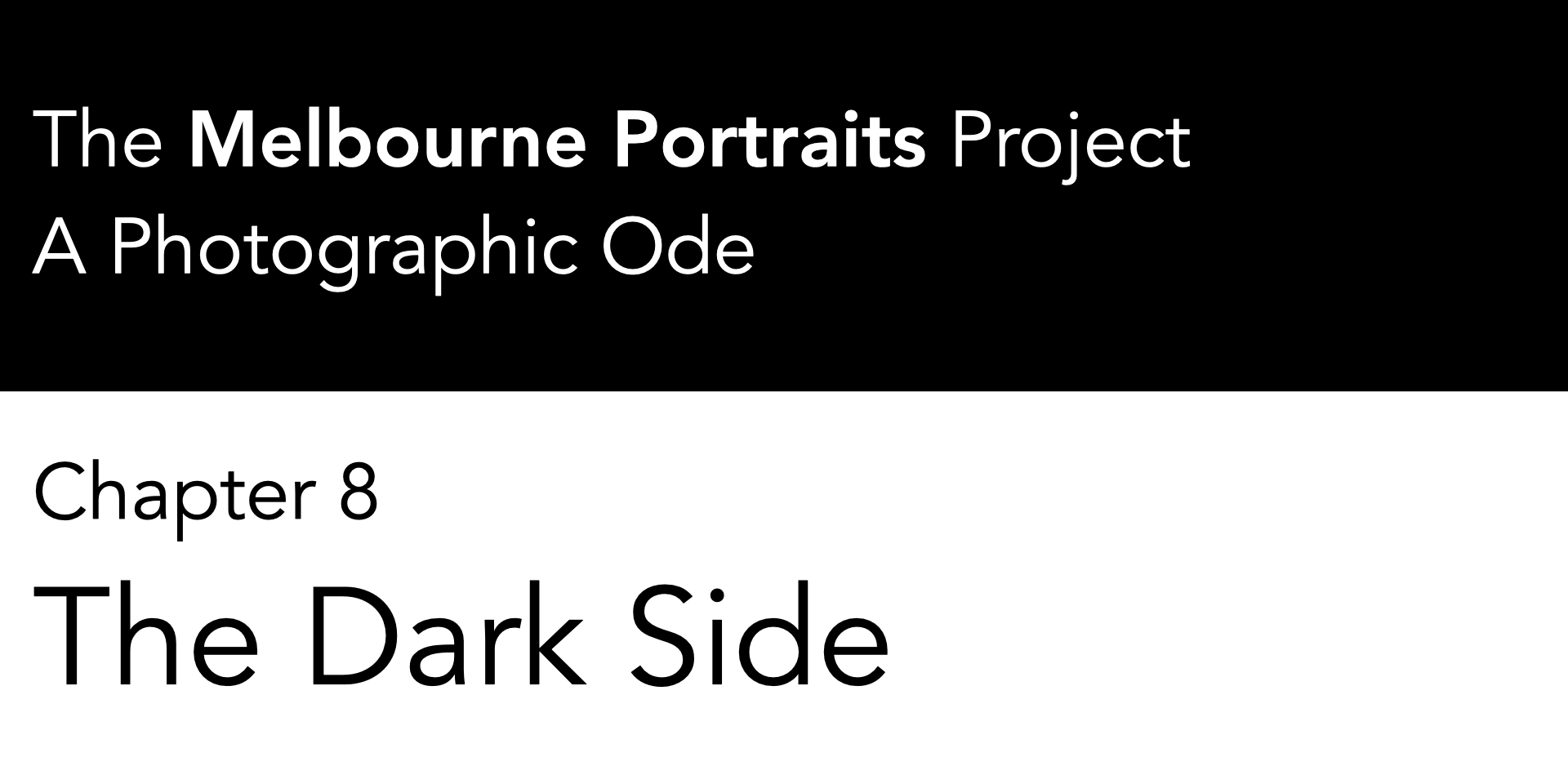 In The Melbourne Portraits Project: A Photographic Ode, Chapter 8: “The Dark Side,” discover the unseen depths of emotion and shadow. True power lies in embracing our complexities and finding beauty in the balance between light and dark. Each portrait invites you to pause and uncover the captivating stories hidden beneath their striking surfaces.