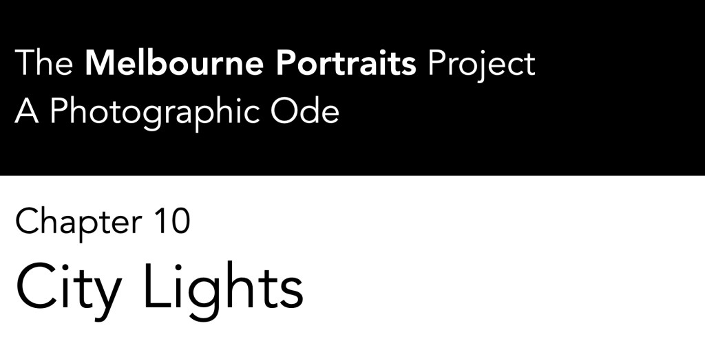 Chapter 10: City Lights in The Melbourne Portraits Project: A Photographic Ode is where Melbourne’s streets transform into a magical playground. Neon signs, reflections, and shadows spark creativity and adventure, turning each photo into a story as vibrant as the city itself.