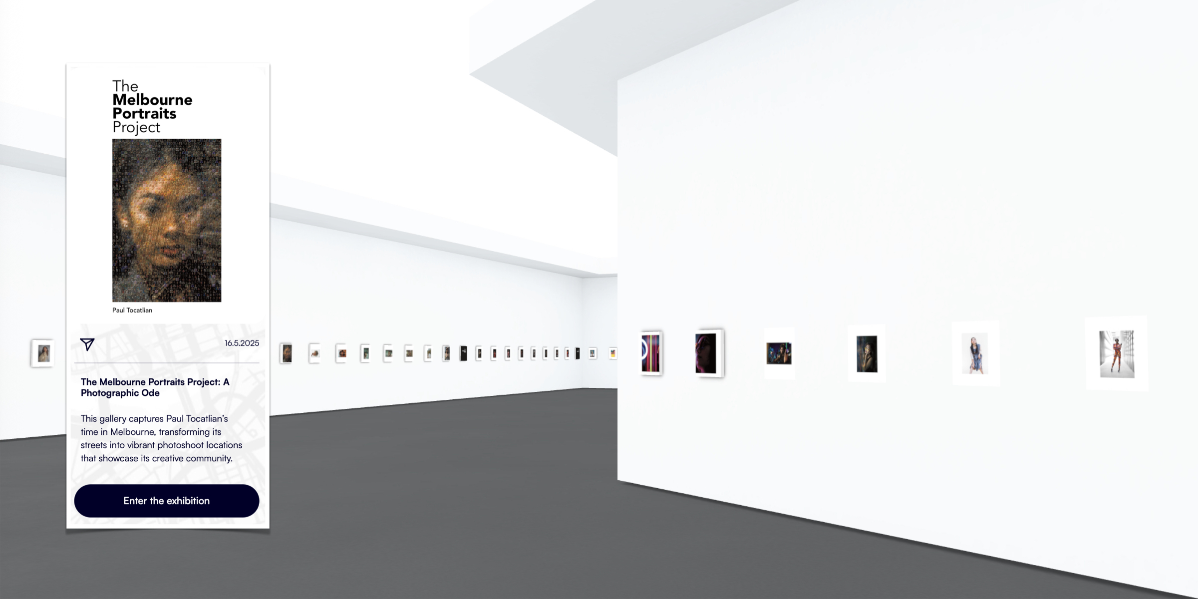Step into a 3D virtual gallery of The Melbourne Portraits Project and explore every portrait from the book. Walk through the collection, connect with each story, and experience the project in a whole new way. Now available on desktop and laptop only.